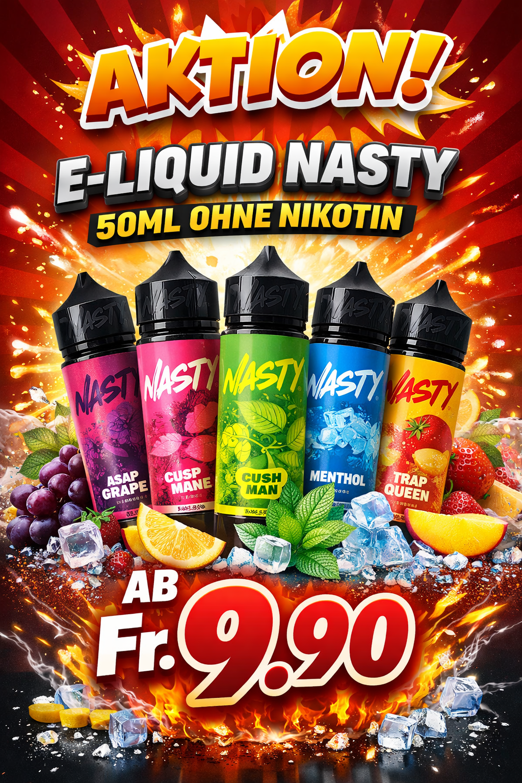 Die Auswahl ist riesig: von fruchtigen Aromen wie Erdbeere, Wassermelone oder Mango über erfrischende Menthol- und Ice-Varianten bis hin zu süssen Dessert-Geschmäckern oder klassischen Tabak-Noten. Viele Hersteller bieten auch Mischungen an, zum Beispiel Beeren-Mix oder tropische Früchte. So findet jeder seinen Favoriten.